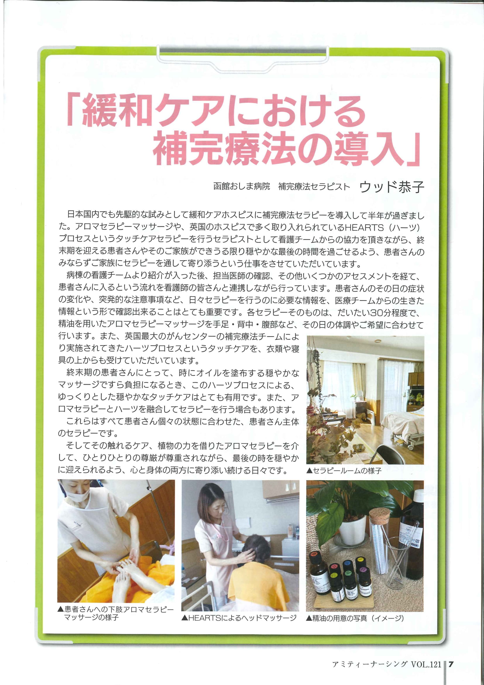 →→「緩和ケアにおける補完療法の導入」アミティーナーシング