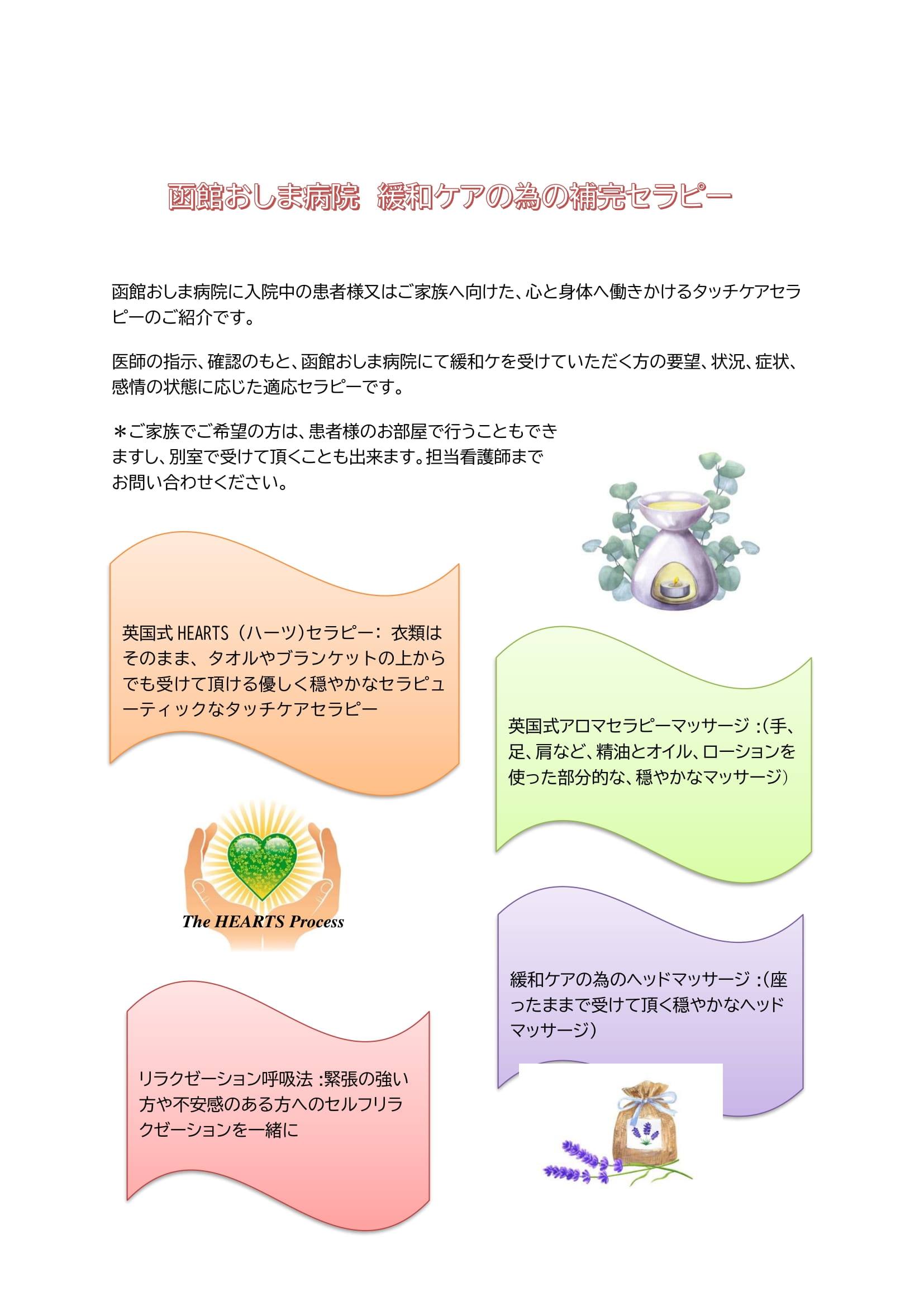 また、英国の緩和けの現場で実践されている”HEARTSプロセス”を用いたタッチケアも導入し、